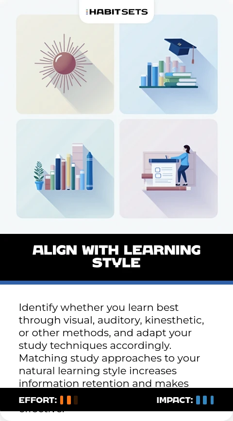 Identify whether you learn best through visual, auditory, kinesthetic, or other methods, and adapt your study techniques accordingly. Matching study approaches to your natural learning style increases information retention and makes studying more engaging and effective.