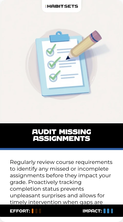 Aisha conducts a weekly audit of all her courses to ensure nothing has fallen through the cracks, which has helped her catch several assignments she would have otherwise missed. This simple habit of verification has protected her grades and reputation with professors.