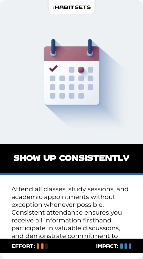 Attend all classes, study sessions, and academic appointments without exception whenever possible. Consistent attendance ensures you receive all information firsthand, participate in valuable discussions, and demonstrate commitment to your education.