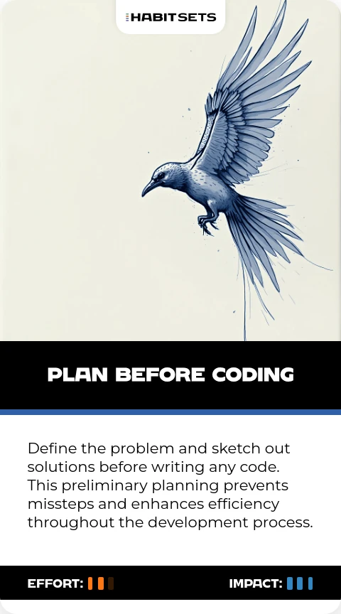Define the problem and sketch out solutions before writing any code. This preliminary planning prevents missteps and enhances efficiency throughout the development process.
