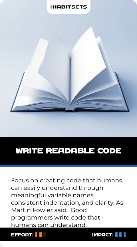 Focus on creating code that humans can easily understand through meaningful variable names, consistent indentation, and clarity. As Martin Fowler said, 'Good programmers write code that humans can understand.'
