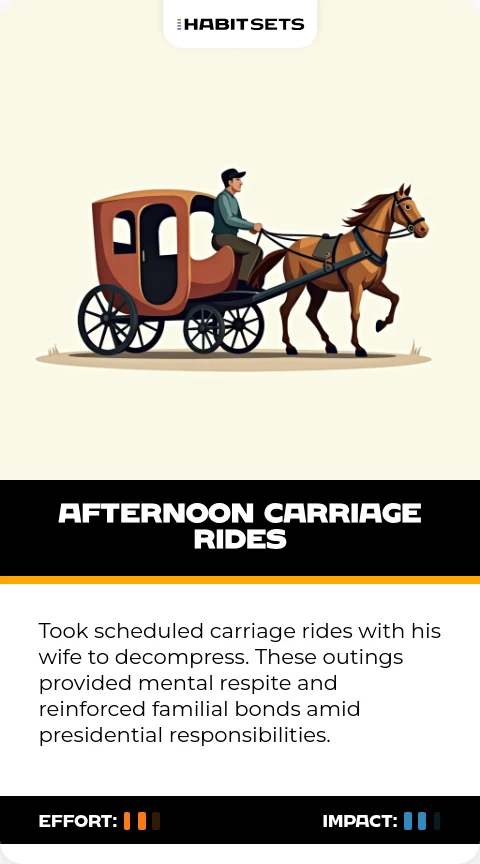Took scheduled carriage rides with his wife to decompress. These outings provided mental respite and reinforced familial bonds amid presidential responsibilities.