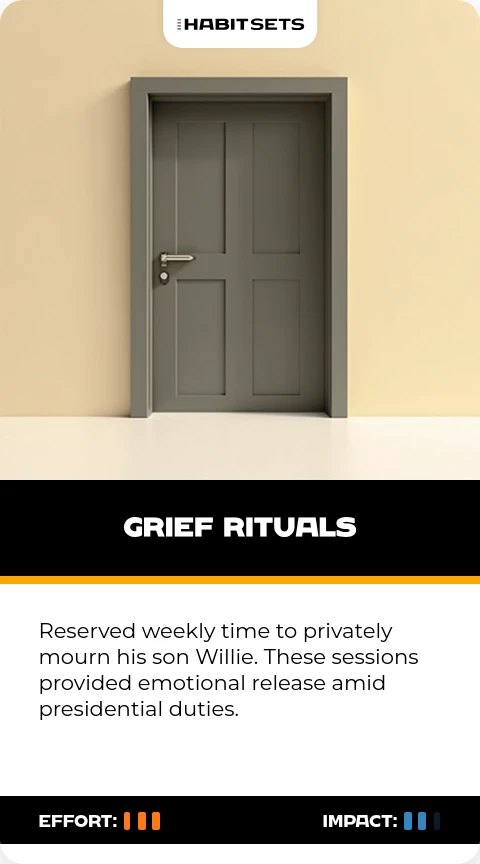 Reserved weekly time to privately mourn his son Willie. These sessions provided emotional release amid presidential duties.