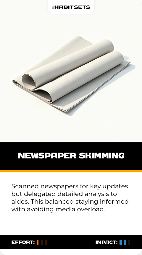 Scanned newspapers for key updates but delegated detailed analysis to aides. This balanced staying informed with avoiding media overload.