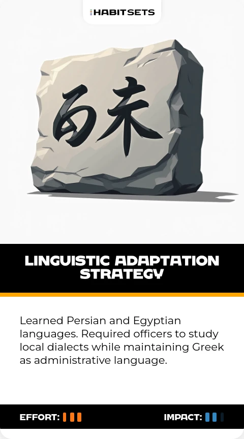 Learned Persian and Egyptian languages. Required officers to study local dialects while maintaining Greek as administrative language.