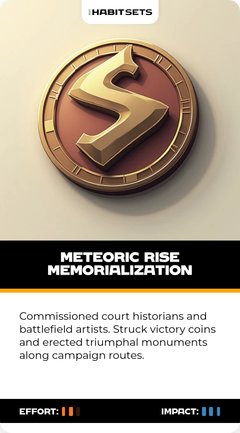 Commissioned court historians and battlefield artists. Struck victory coins and erected triumphal monuments along campaign routes.