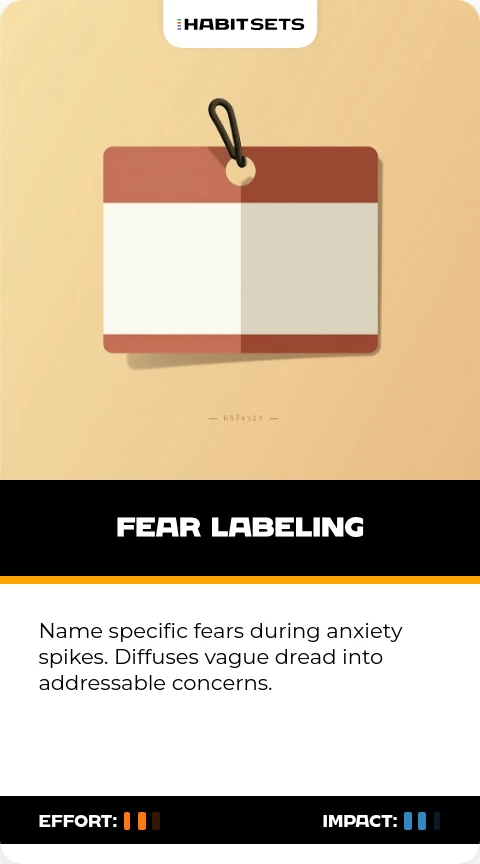 Name specific fears during anxiety spikes. Diffuses vague dread into addressable concerns.