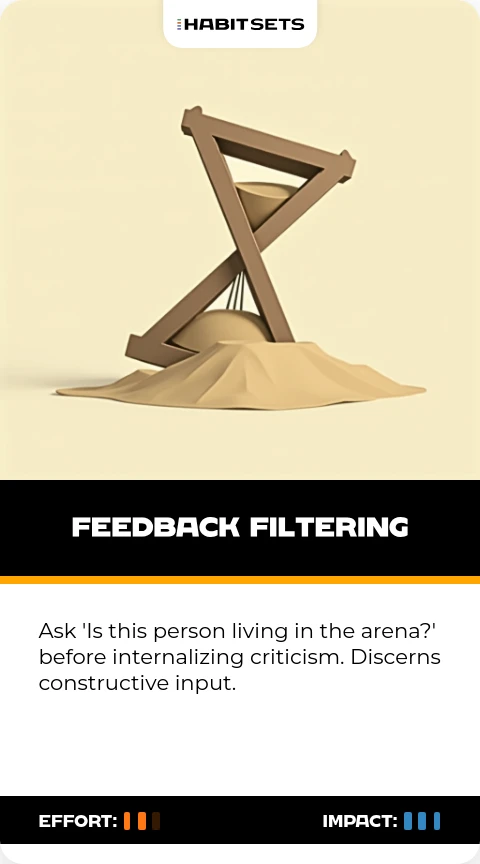 Ask 'Is this person living in the arena?' before internalizing criticism. Discerns constructive input.
