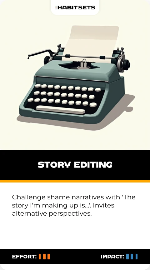 Challenge shame narratives with 'The story I'm making up is...'. Invites alternative perspectives.