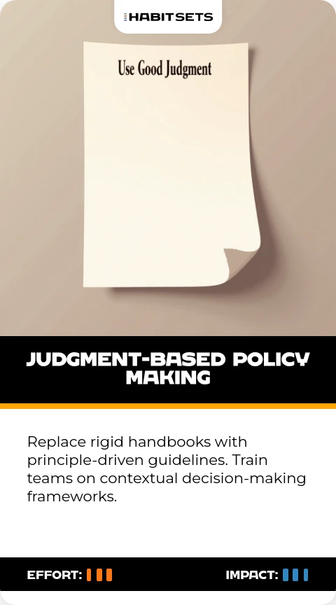 Replace rigid handbooks with principle-driven guidelines. Train teams on contextual decision-making frameworks.