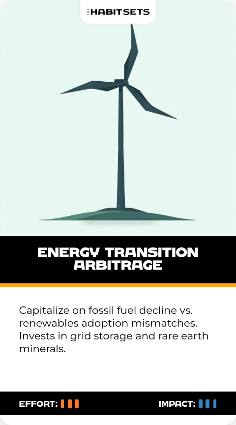 Capitalize on fossil fuel decline vs. renewables adoption mismatches. Invests in grid storage and rare earth minerals.