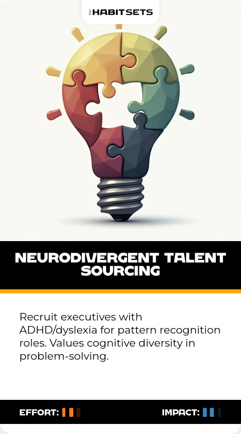 Recruit executives with ADHD/dyslexia for pattern recognition roles. Values cognitive diversity in problem-solving.