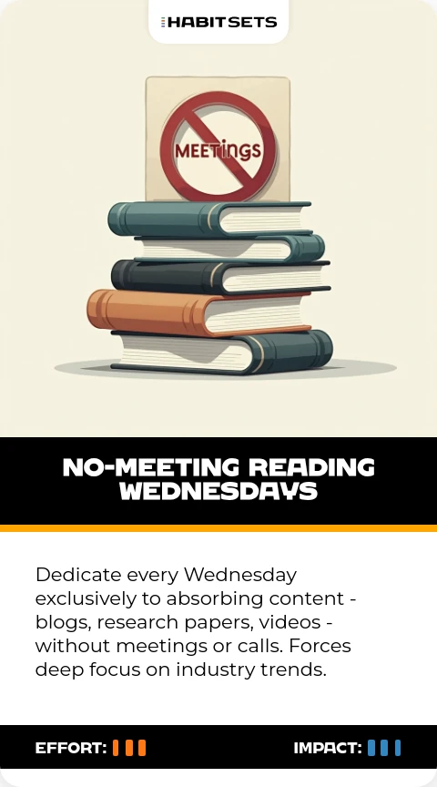 Dedicate every Wednesday exclusively to absorbing content - blogs, research papers, videos - without meetings or calls. Forces deep focus on industry trends.