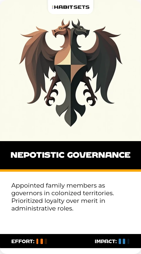 Appointed family members as governors in colonized territories. Prioritized loyalty over merit in administrative roles.