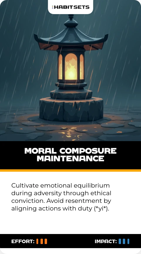Cultivate emotional equilibrium during adversity through ethical conviction. Avoid resentment by aligning actions with duty (*yi*).