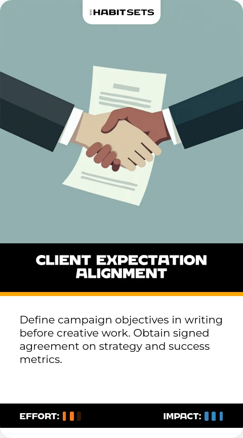 Define campaign objectives in writing before creative work. Obtain signed agreement on strategy and success metrics.