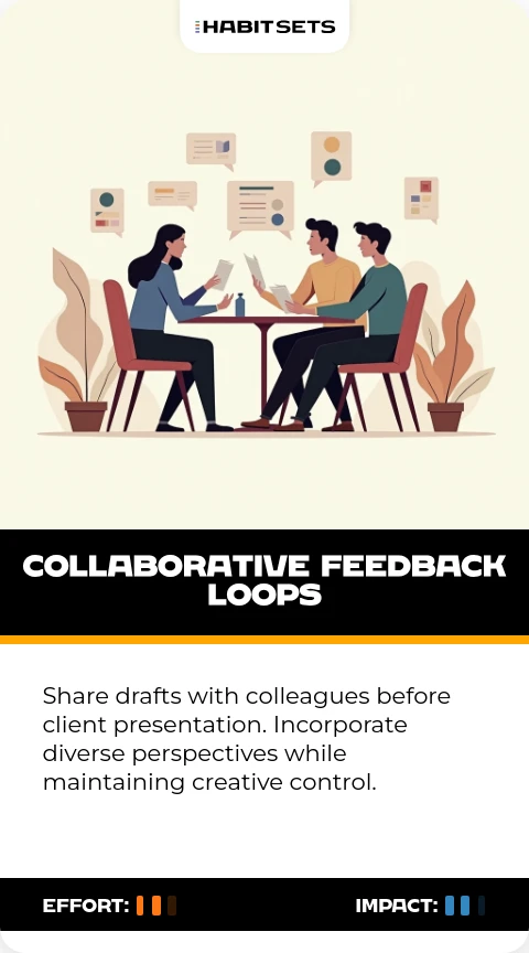 Share drafts with colleagues before client presentation. Incorporate diverse perspectives while maintaining creative control.