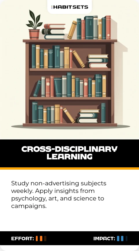 Study non-advertising subjects weekly. Apply insights from psychology, art, and science to campaigns.