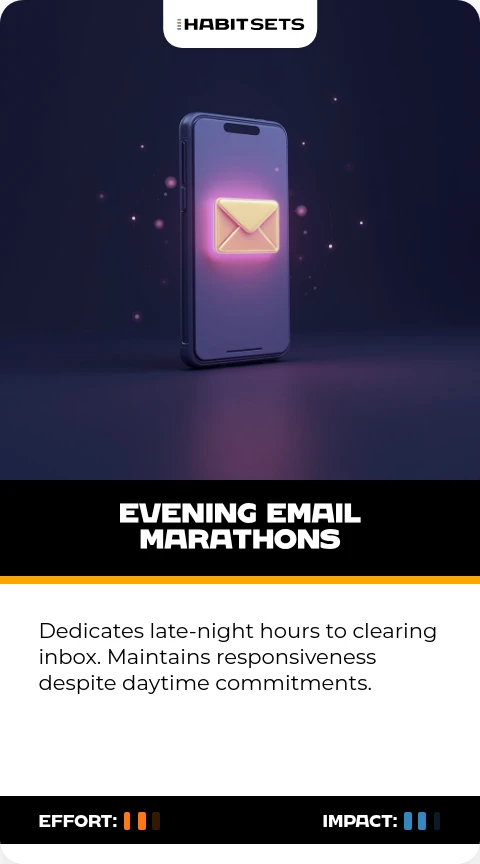 Dedicates late-night hours to clearing inbox. Maintains responsiveness despite daytime commitments.