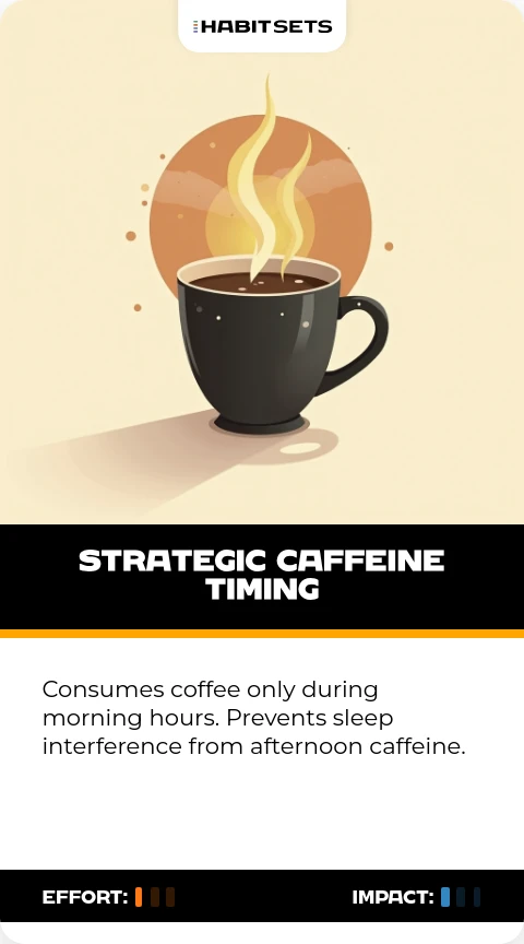Consumes coffee only during morning hours. Prevents sleep interference from afternoon caffeine.