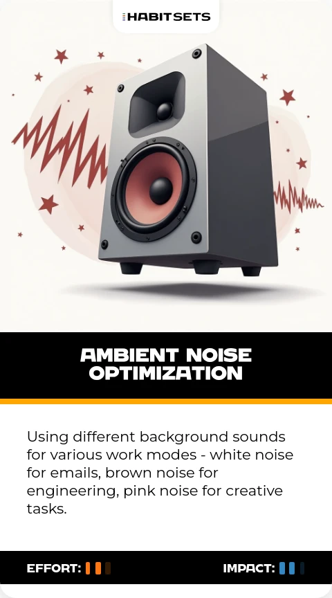 Using different background sounds for various work modes - white noise for emails, brown noise for engineering, pink noise for creative tasks.