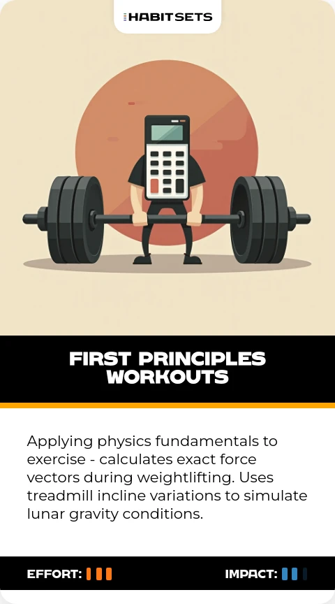 Applying physics fundamentals to exercise - calculates exact force vectors during weightlifting. Uses treadmill incline variations to simulate lunar gravity conditions.