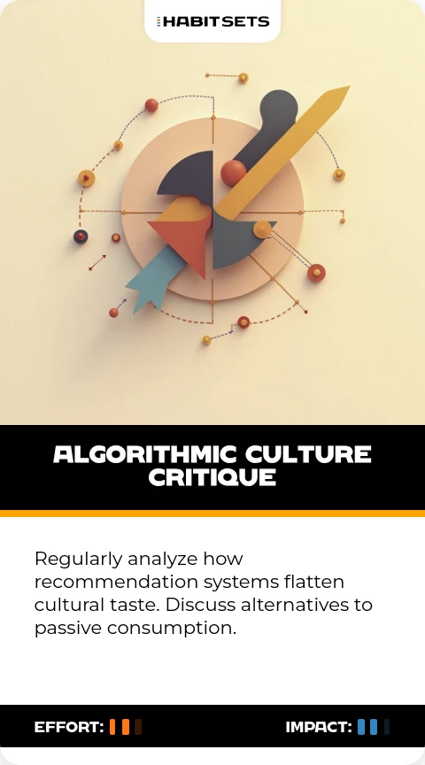 Regularly analyze how recommendation systems flatten cultural taste. Discuss alternatives to passive consumption.