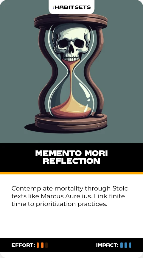 Contemplate mortality through Stoic texts like Marcus Aurelius. Link finite time to prioritization practices.