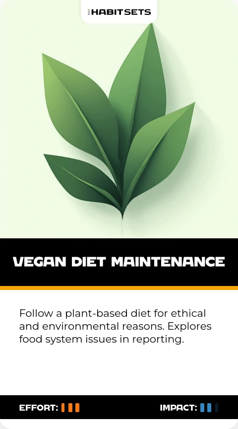Follow a plant-based diet for ethical and environmental reasons. Explores food system issues in reporting.