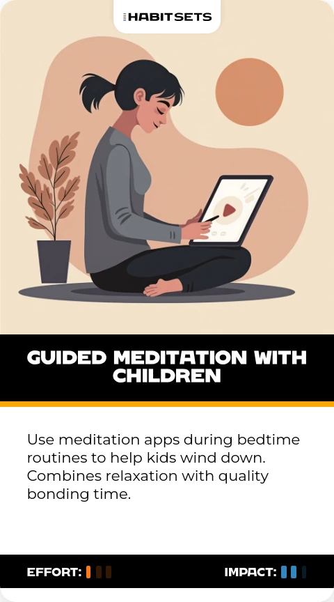Use meditation apps during bedtime routines to help kids wind down. Combines relaxation with quality bonding time.