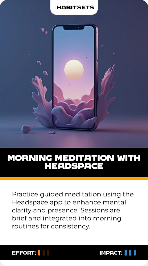 Practice guided meditation using the Headspace app to enhance mental clarity and presence. Sessions are brief and integrated into morning routines for consistency.