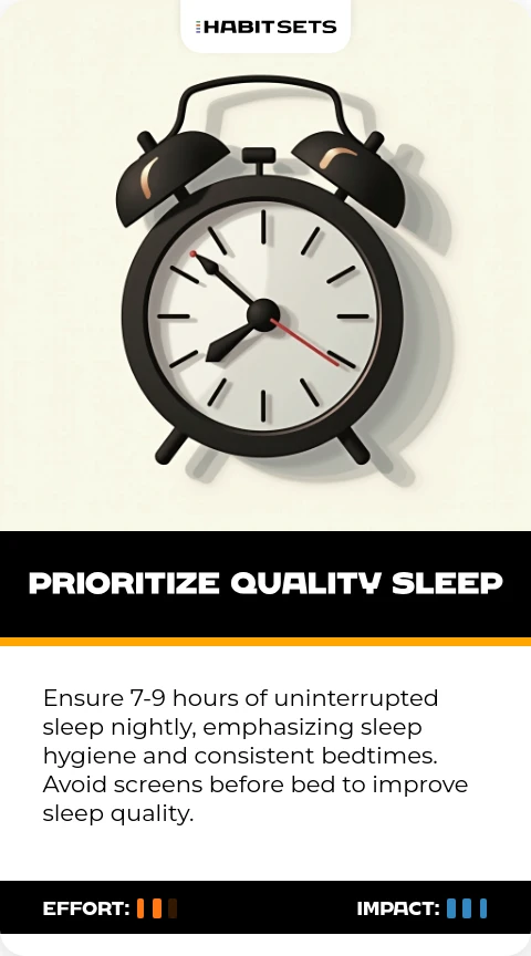 Ensure 7-9 hours of uninterrupted sleep nightly, emphasizing sleep hygiene and consistent bedtimes. Avoid screens before bed to improve sleep quality.