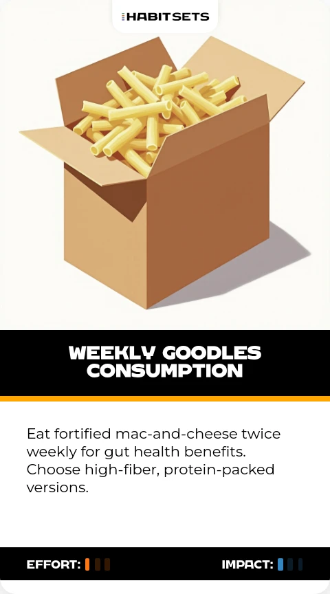 Eat fortified mac-and-cheese twice weekly for gut health benefits. Choose high-fiber, protein-packed versions.