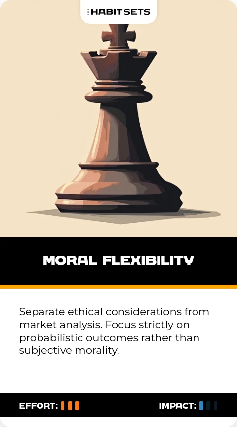 - Maintain Pragmatic Detachment: Moral Flexibility. Separate personal ethics from objective market analysis to make rational decisions based on probabilistic outcomes.