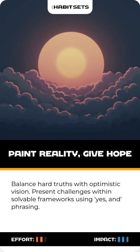 - Balance Reality and Hope: Communicate honestly about challenges while maintaining an optimistic vision.