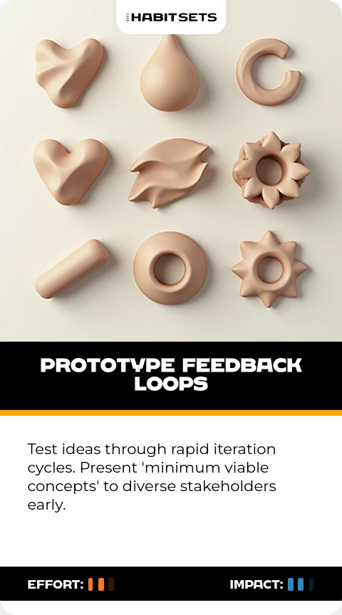 Test ideas through rapid iteration cycles. Present 'minimum viable concepts' to diverse stakeholders early.