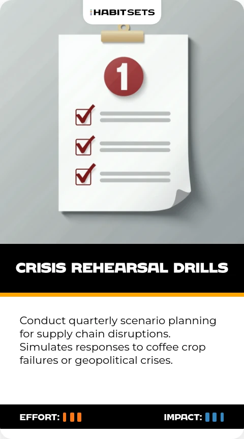 Conduct quarterly scenario planning for supply chain disruptions. Simulates responses to coffee crop failures or geopolitical crises.