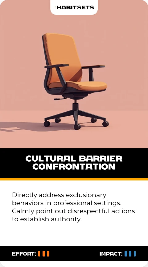 Directly address exclusionary behaviors in professional settings. Calmly point out disrespectful actions to establish authority.