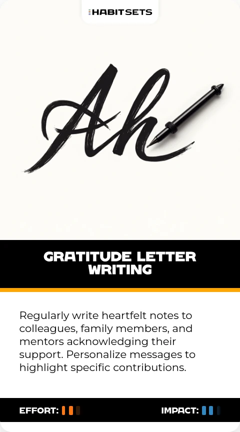 Regularly write heartfelt notes to colleagues, family members, and mentors acknowledging their support. Personalize messages to highlight specific contributions.