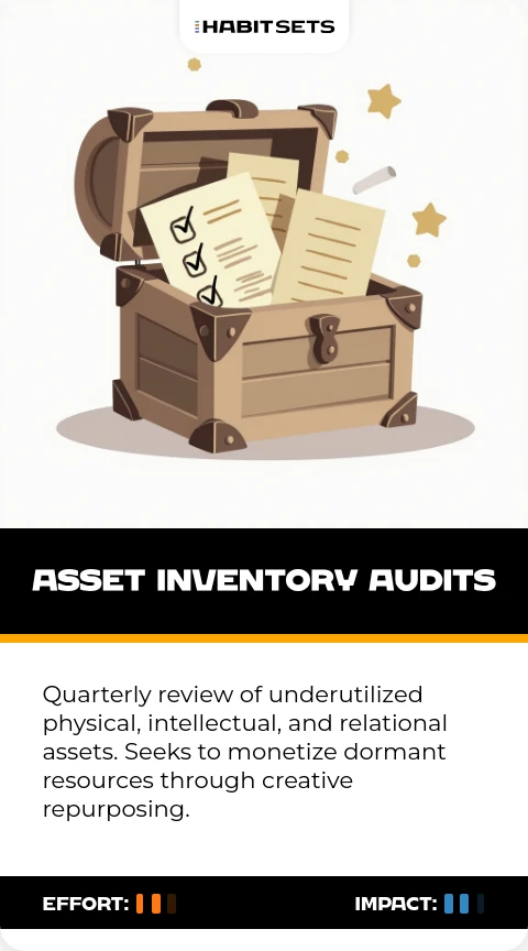 Quarterly review of underutilized physical, intellectual, and relational assets. Seeks to monetize dormant resources through creative repurposing.