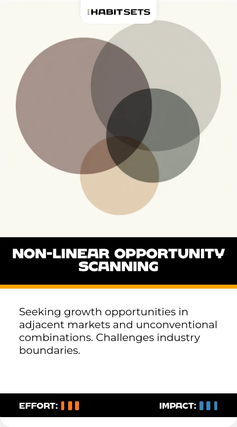 Abraham's breakthrough innovation strategy. This habit discovers white space others overlook by refusing categorical constraints.