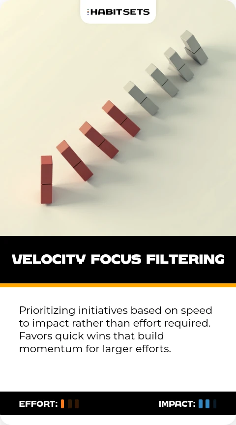 Prioritizing initiatives based on speed to impact rather than effort required. Favors quick wins that build momentum for larger efforts.