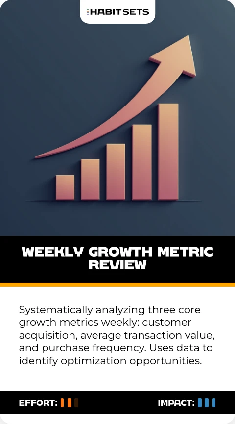 Systematically analyzing three core growth metrics weekly: customer acquisition, average transaction value, and purchase frequency. Uses data to identify optimization opportunities.