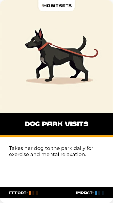 Takes her dog to the park daily for exercise and mental relaxation.
