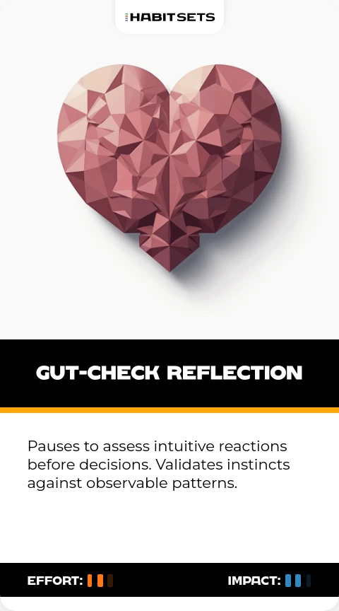 Pauses to assess intuitive reactions before decisions. Validates instincts against observable patterns.