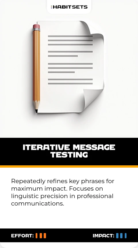 Repeatedly refines key phrases for maximum impact. Focuses on linguistic precision in professional communications.