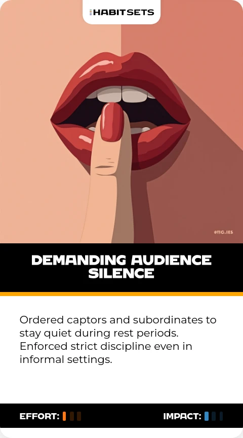 Ordered captors and subordinates to stay quiet during rest periods. Enforced strict discipline even in informal settings.