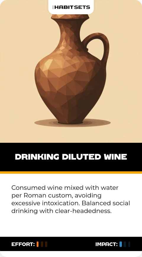 Consumed wine mixed with water per Roman custom, avoiding excessive intoxication. Balanced social drinking with clear-headedness.