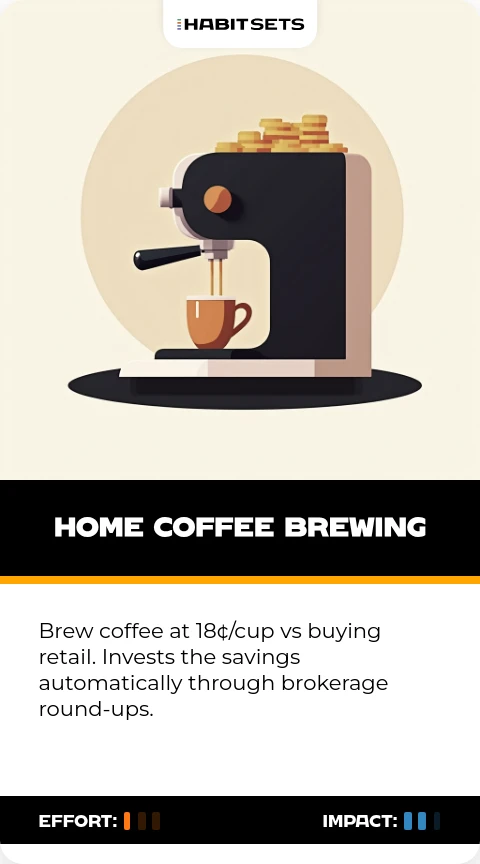 Brew coffee at 18ยข/cup vs buying retail. Invests the savings automatically through brokerage round-ups.