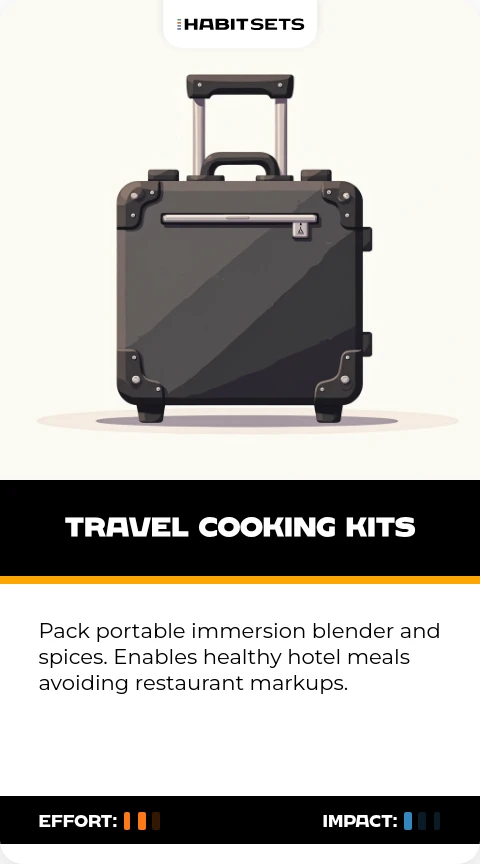 Pack portable immersion blender and spices. Enables healthy hotel meals avoiding restaurant markups.